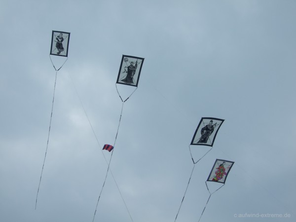 Der Wind bot auch verschiedene Qualitäten, so konnte man verteilt über die drei Tage ein recht abwechslungsreiches Bild am Drachenhimmel beobachten.
