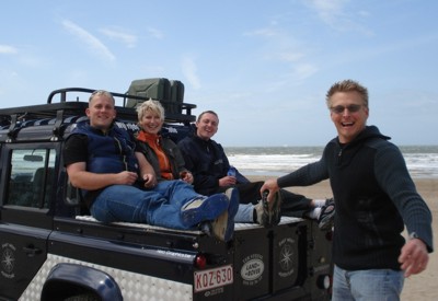 Für gute Laune sorgten unter anderem die beiden Shuttlefahrzeuge, mit denen die Drachentaschen auf dem Strand transportiert wurden. Wir flogen zusammen mit dem Team No Limit aus Cuxhaven, so ergab es sich, dass wir die Jeeps gemeinsam bepackten. Die Menge an Gepäck, die wir aufgeladen haben, erstaunte sogar die Fahrer.