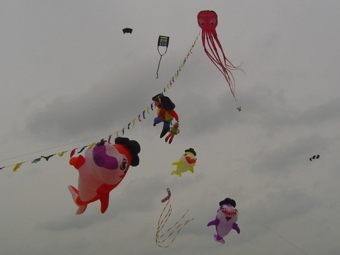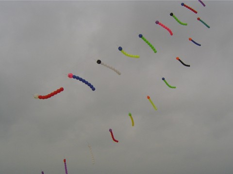 | Da der Wind sehr unruhig war, hatte Steini seine "Würmer" an den Himmel geworfen - dafür hat er bestimmt viel Zeit an der Nähmaschine verbracht. | ![]() |